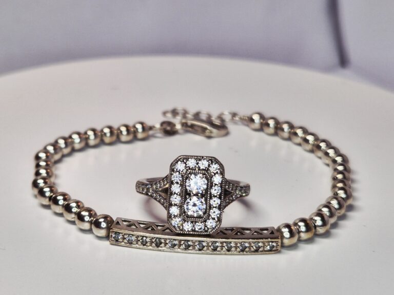Silver Cubic Zirconia Square Cluster Ring & FREE Silver Cubic Zirconia Bracelet