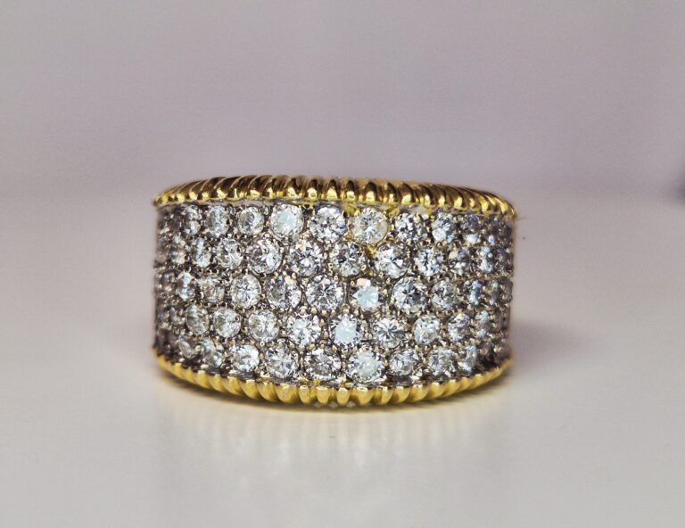 18ct Yellow Gold 69 * 0.02ct 1.38ct total 5 row Diamond Pave Micro claw Set Ring
