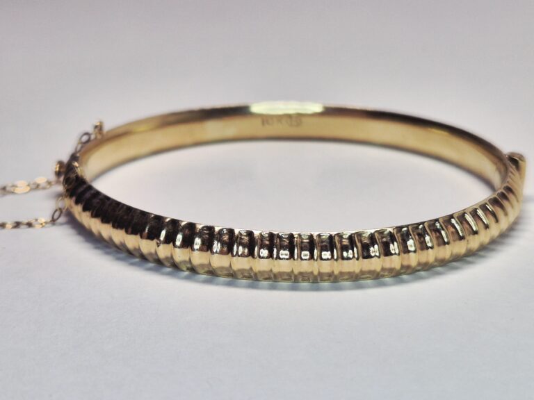 10ct Yellow Gold Fully Patterned Hollow Bangle Bracelet With Safety Chain