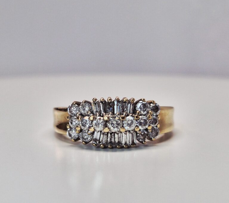 Hallmarked 9ct Yellow Gold Vintage Diamond Fancy Cluster Ring From 1976