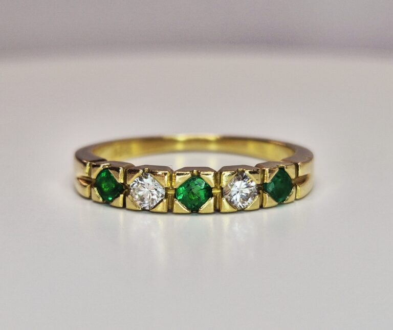 18ct Yellow Gold 5stone Round Cut Emerald & Diamond Ring Finger Size O